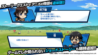 El juego presenta una historia ambientada en el periodo de los Reinos Combatientes de China, donde los jugadores deben enfrentar a diversas facciones enemigas. A medida que avanzan, pueden subir de nivel a sus personajes y equiparlos con mejoras, lo que les permite crear un ejército verdaderamente único. Además, incluye eventos especiales con historias exclusivas que enriquecen la experiencia. Con gráficos atractivos y un elenco de voces del anime, キングダムDASH ofrece una inmersión en el universo de "キングダム" que resulta cautivadora.